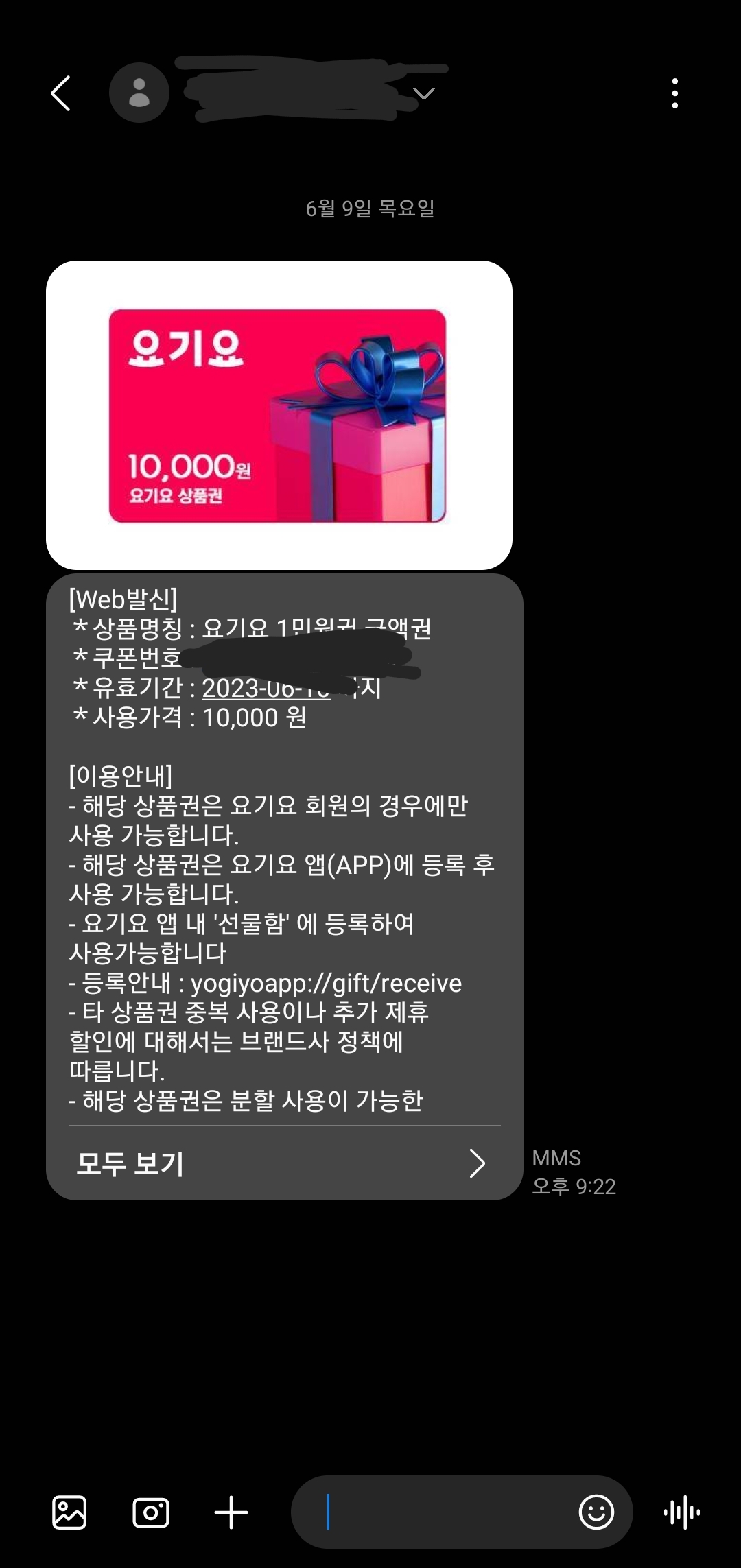 - 요기요 앱 내 '선물함'에 등록하여 사용 가능합니다.